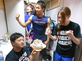スタッフ全員で誕生日のスタッフにケーキをプレゼントしています。